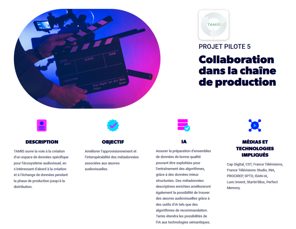 Le trial TAMIS ouvre la voie à la création d’un espace de données spécifique à l’audiovisuel, en se concentrant dans un premier temps sur la phase de production jusqu’à la distribution des œuvres.